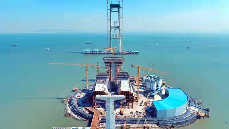 世界最大跨径海中钢箱梁悬索桥——深中通道伶仃洋大桥建设现场