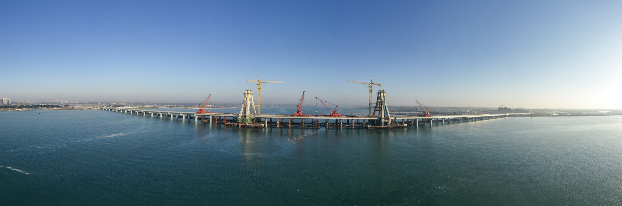 12月7日拍摄的建设中的西村港跨海大桥(无人机全景照片)。新华社记者 曹祎铭 摄