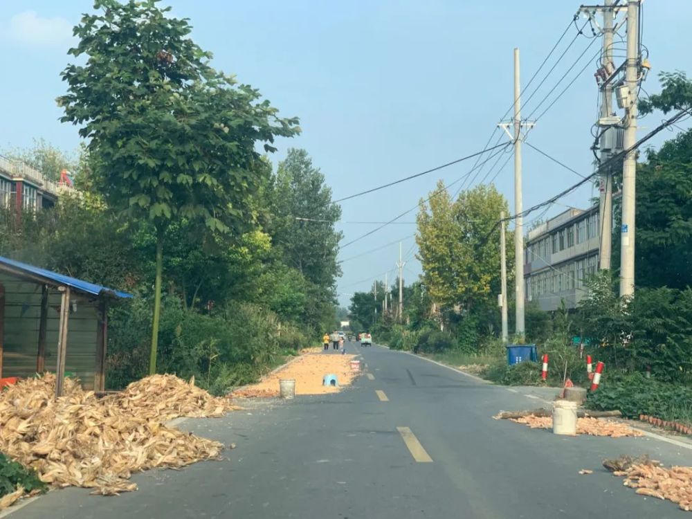 在马路上打场晒粮,使路面的平整度受到影响,加大行车阻力,车辆稍一制动,容易产生侧滑而失去控制。