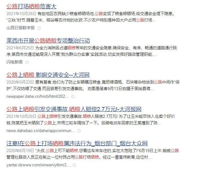 每到收获季节,全国各地因道路晒粮而引发的交通事故接连见诸报端,产生的交通事故和责任纠纷不断。